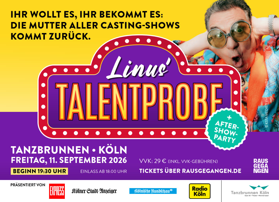 Die Show von Wine Wednesday mit Jani und Alina am Donnerstag, den 23.04.2026, wird aus produktionstechnischen Gründen verlegt. Die Veranstaltung findet nun in der Kulturkirche Köln statt.